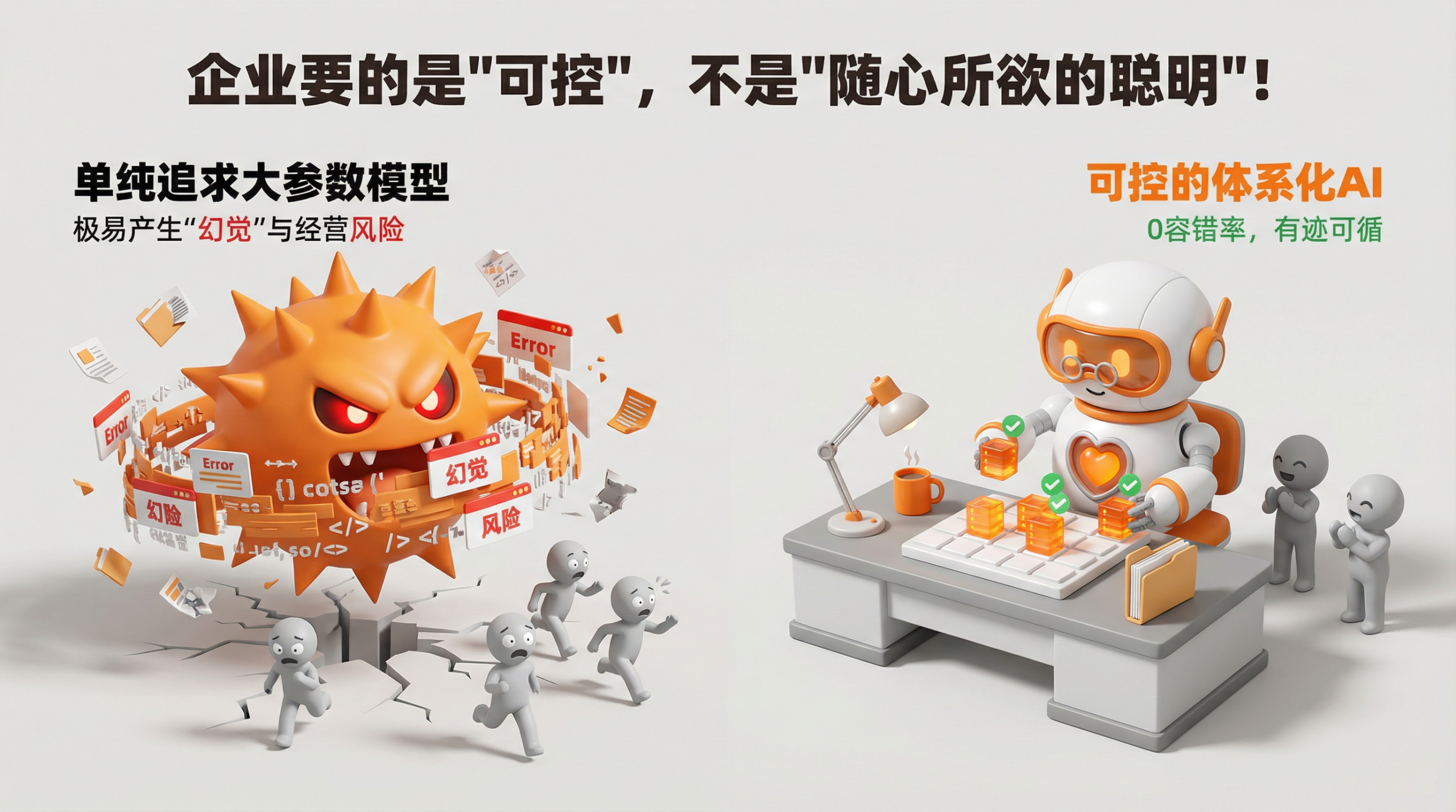 在消费场景里,模型的失误最多影响用户体验;而企业场景的容错率几乎为零。合同中的关键字出错、库存预测出现偏差、财务指标理解失误,都可能引发难以承受的经营风险。企业最担心的,不是AI能力不够,而是AI随心所欲地“乱来”。模型“幻觉”在企业场景中,早已不再是单纯的技术问题,而是实实在在的经营风险。