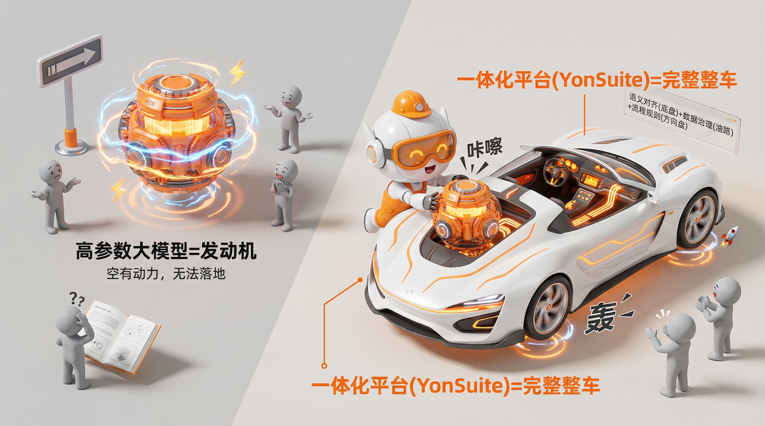 如果把模型比作一台强劲的发动机,那么一体化平台就是完整的整车:语义对齐是底盘,决定着行驶的稳定性;数据治理是油路,保障着动力的顺畅传输;流程规则是方向盘,把控着前进的方向。没有扎实的底盘、通畅的油路和精准的方向盘,再强的发动机也跑不稳、跑不远,最终只能成为一个摆设。